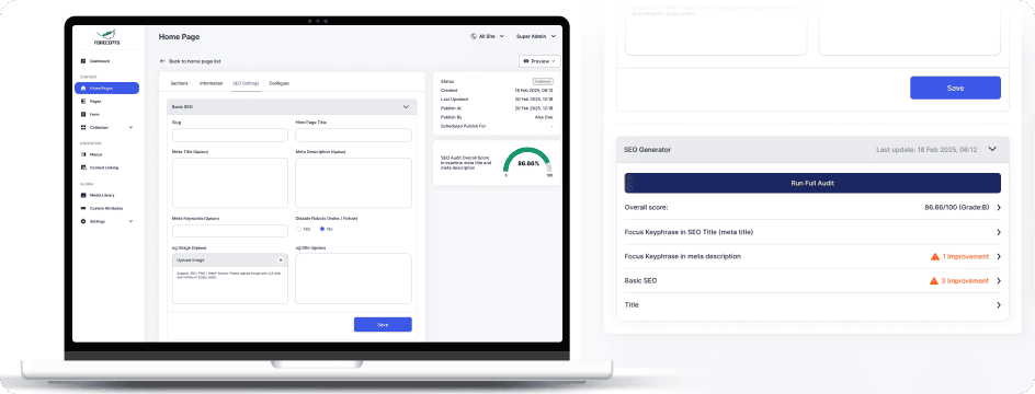 Forecepts CMS is a headless, AI-enhanced content platform designed for organizations that demand speed, scalability, and measurable digital performance — without sacrificing governance.