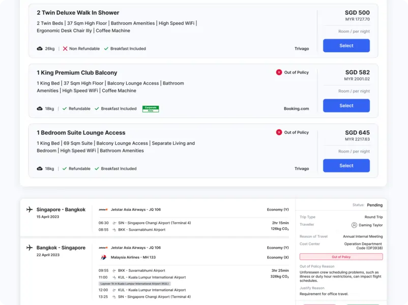 Built-in eligibility checks ensure every booking meets company policy.
